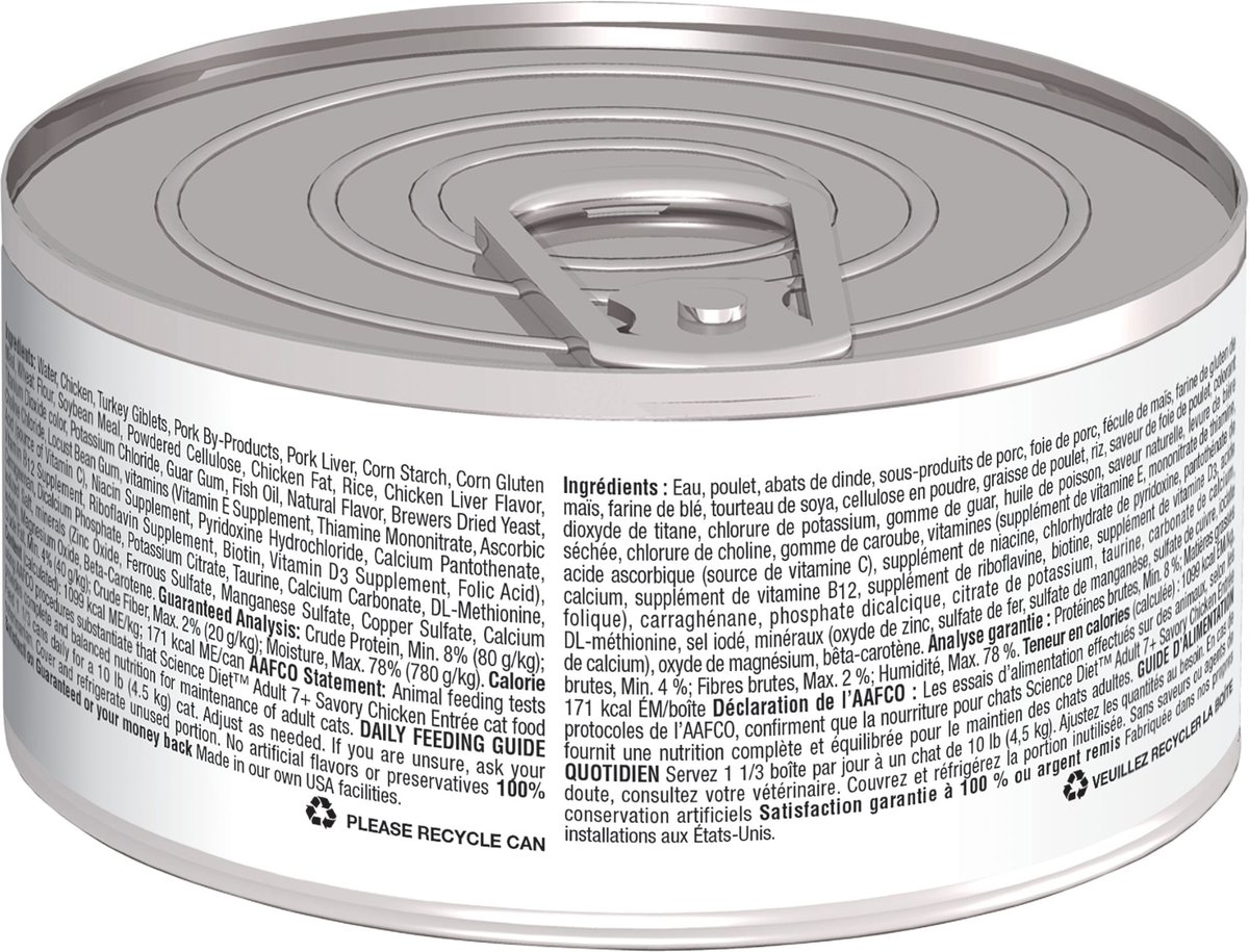 Hill's Science Diet Adult 7+ Savory Chicken Entree Canned Cat Food, 156-g can, case of 24