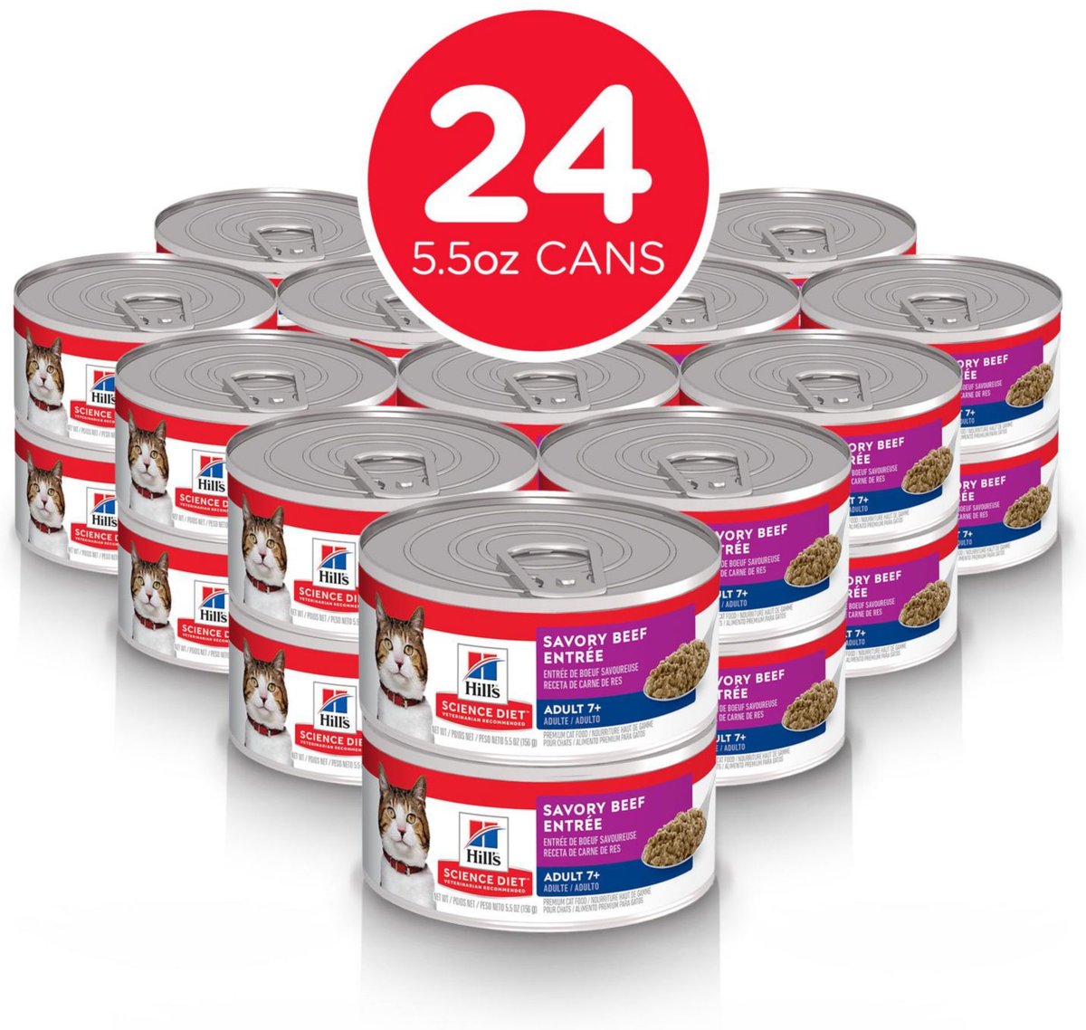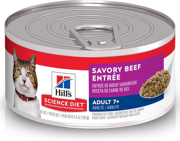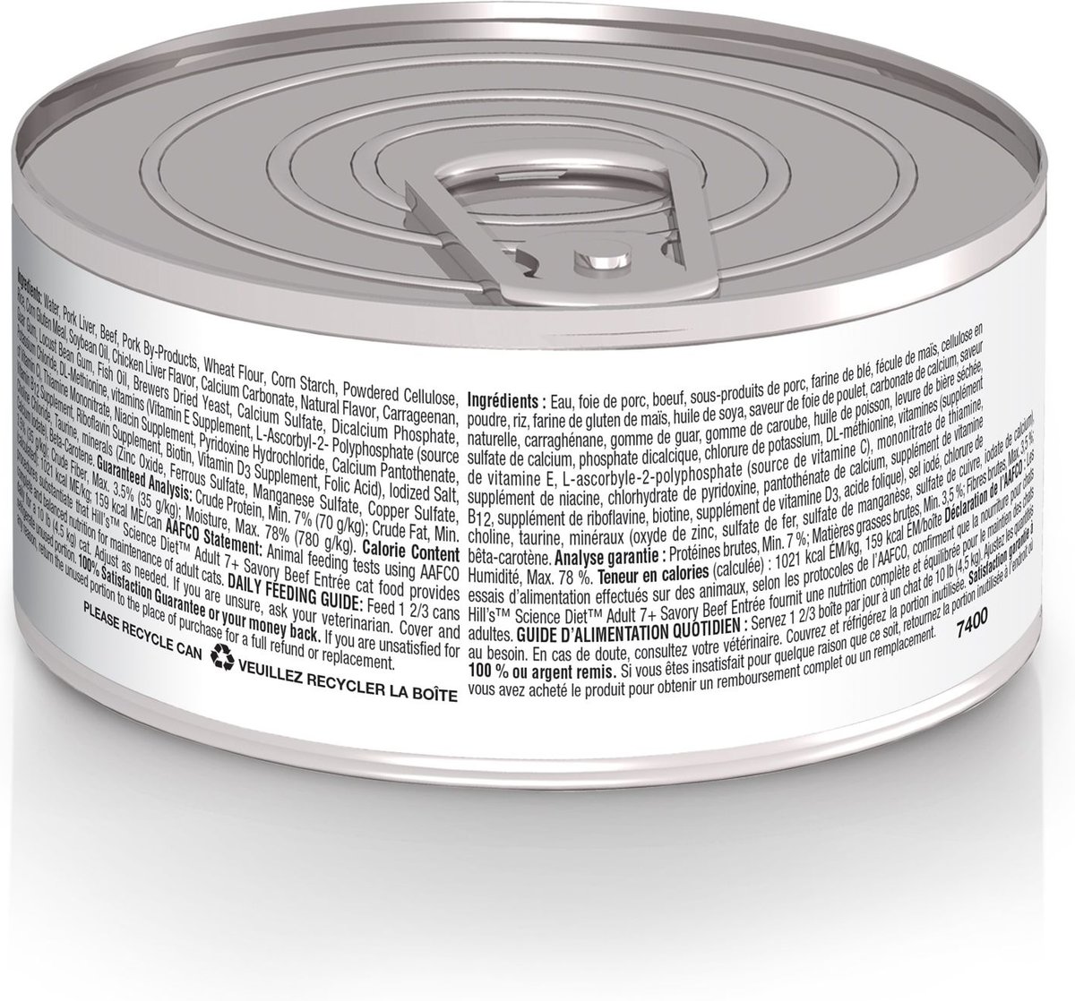 Hill's Science Diet Adult 7+ Savory Beef Entree Canned Cat Food, 156-g can, case of 24