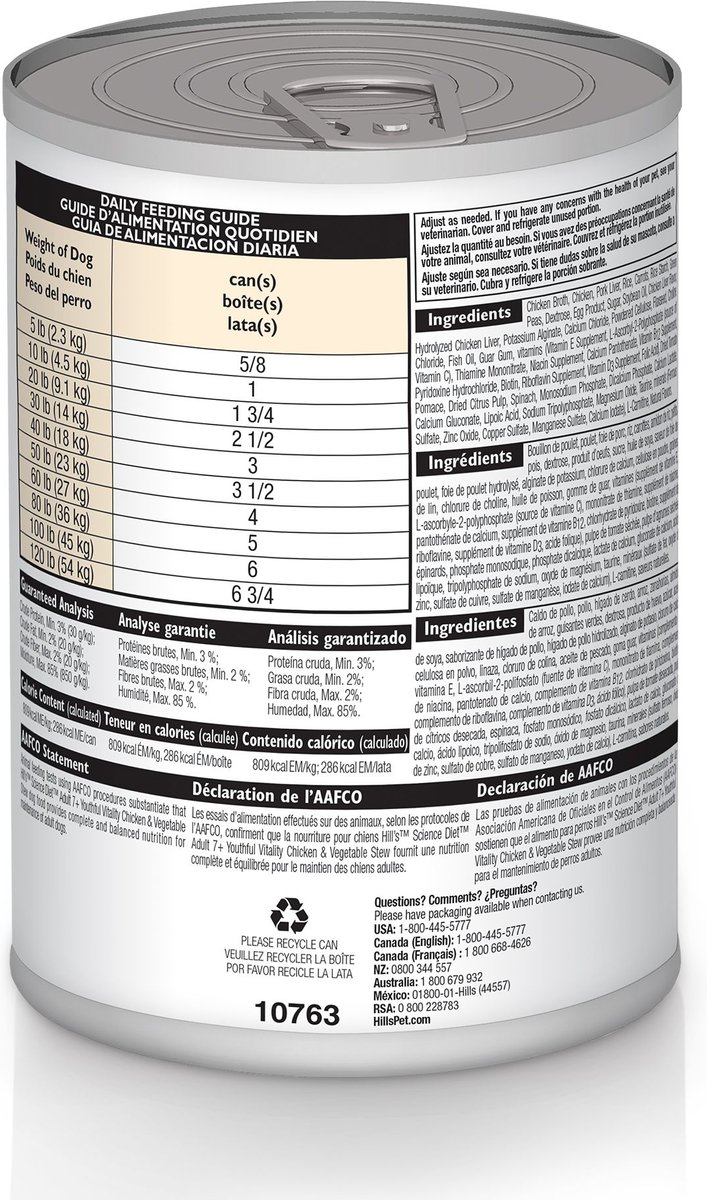 Hill's Science Diet Adult 7+ Senior Vitality Chicken & Vegetable Stew Canned Dog Food, 354-g can, case of 12