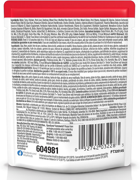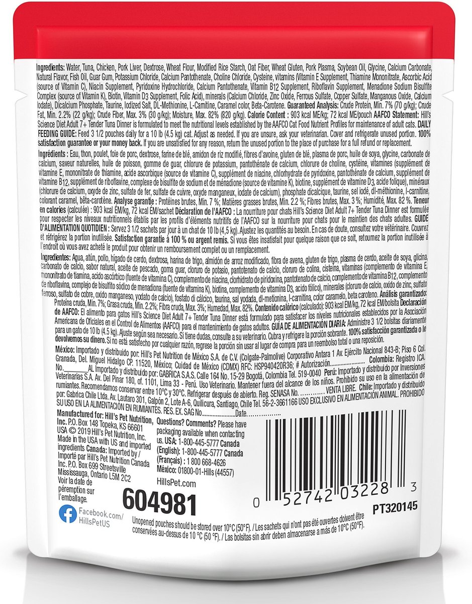 Hill's Science Diet Adult 7+ Tender Tuna Recipe Cat Food, 79-g pouch, case of 24