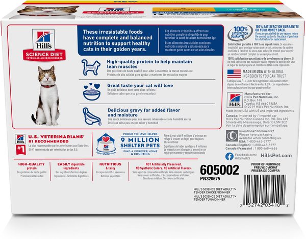 Hill's Science Diet Adult 7+ Tender Dinner Variety Pack Cat Food, 79-g pouch, case of 12