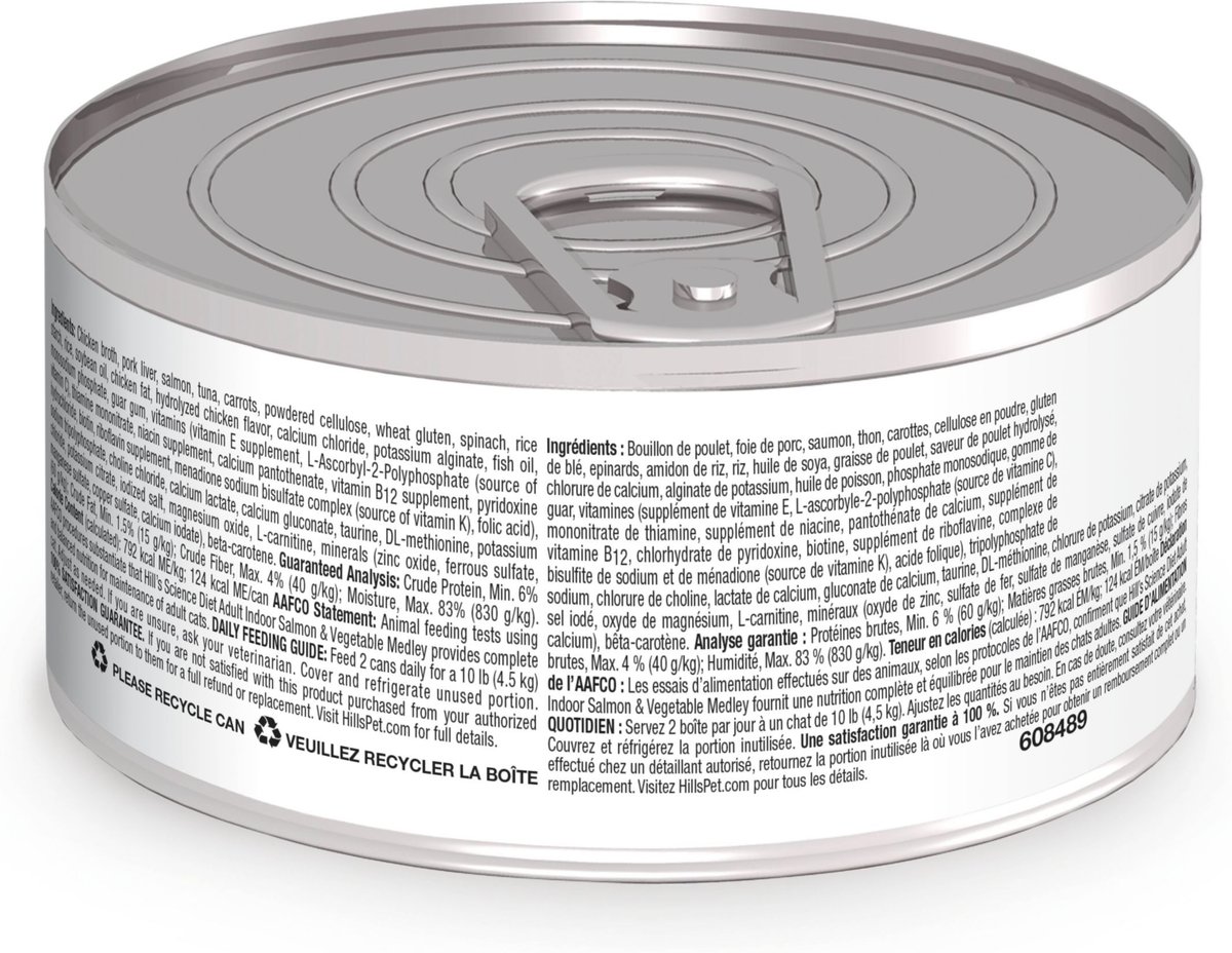 Hill's Science Diet Adult Indoor Salmon & Vegetable Medley Canned Cat Food, 5.5-oz can, case of 24