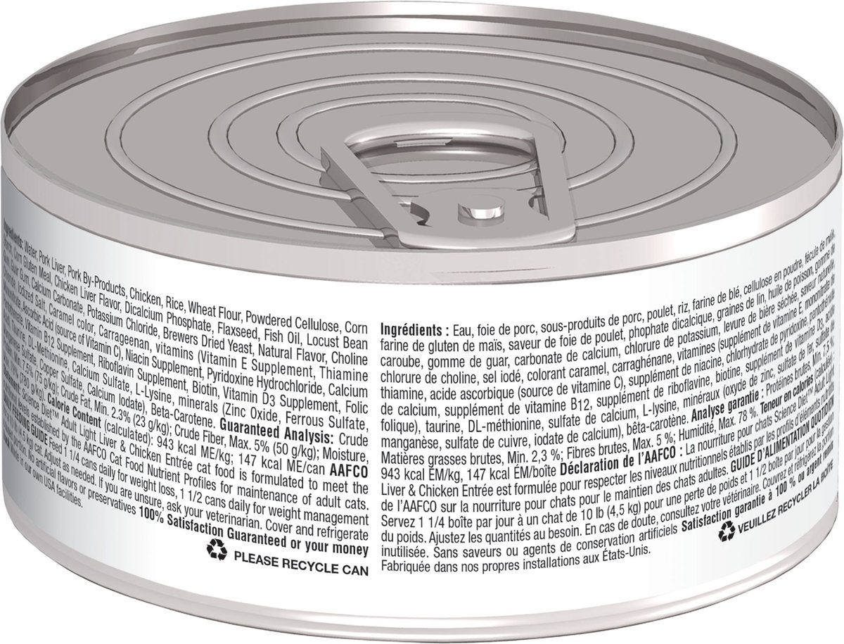 Hill's Science Diet Adult Light Liver & Chicken Entree Canned Cat Food, 156-g can, case of 24