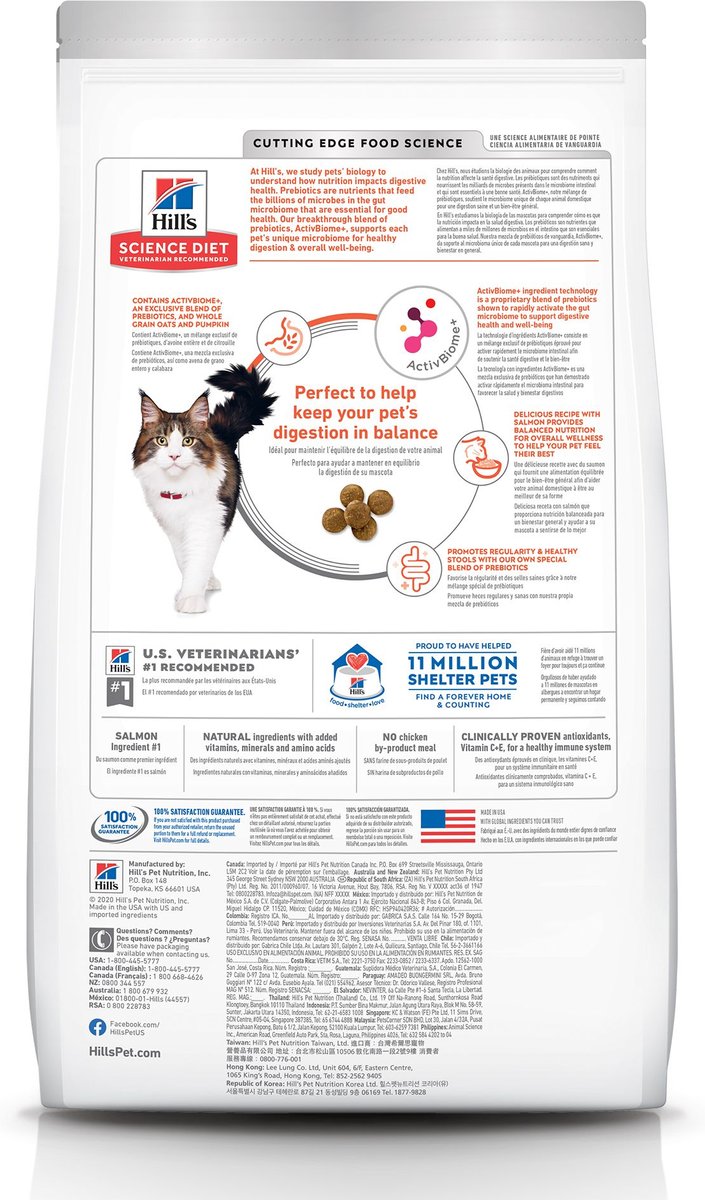 Hill's Science Diet Adult Perfect Digestion Salmon Dry Cat Food, 5.89-kg bag