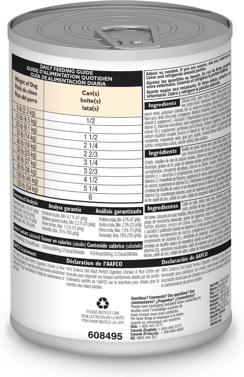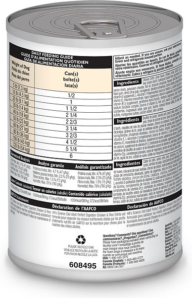 Hill's Science Diet Adult Perfect Digestion Chicken & Rice Entree Canned Dog Food, 12.8-oz can, case of 12