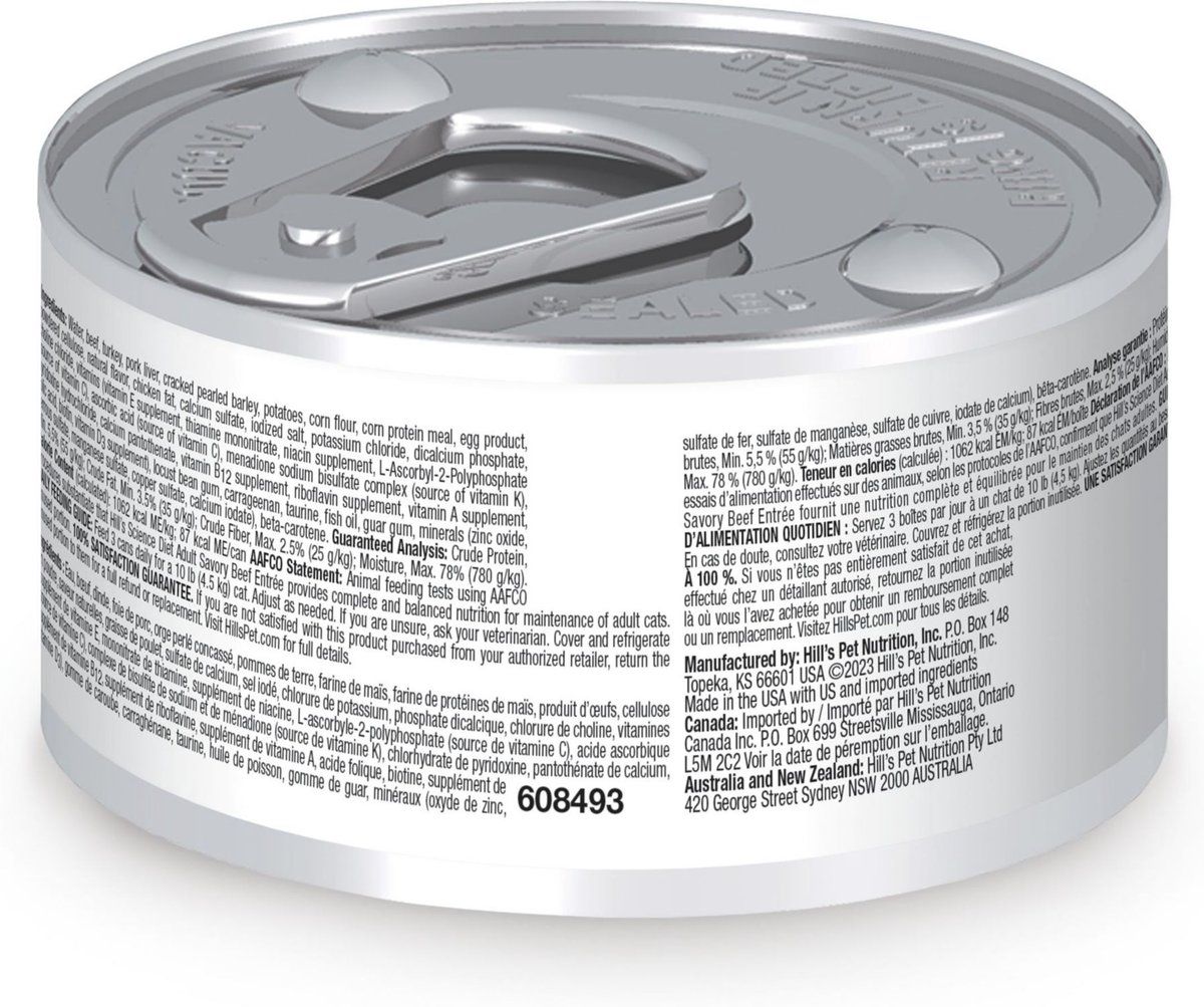 Hill's Science Diet Adult Savory Beef Entree Canned Cat Food, 2.9-oz can, case of 24