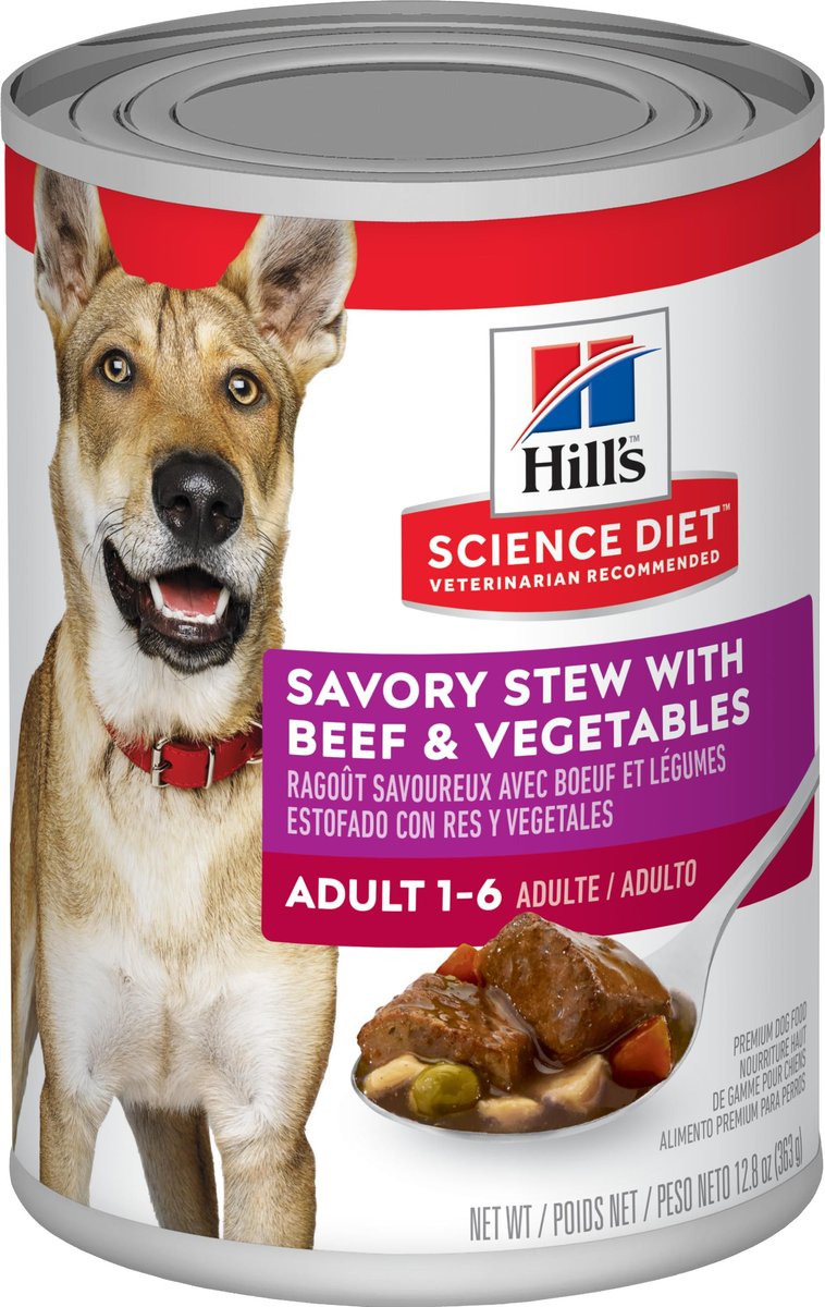 Hill's Science Diet Adult Savory Stew with Beef & Vegetables Canned Dog Food, 363-g can, case of 12