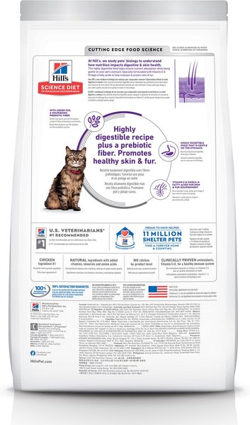Hill's Science Diet Adult Sensitive Stomach & Skin Cat Food provides your adult cat with great tasting nutrition for a long, happy life. Formulated for adult cats with sensitive stomachs or skin, this nourishing recipe is balanced to meet your pet’s needs, is easy to digest and promotes a healthy skin and coat. Made in the USA with global ingredients you can trust, every ingredient meets strict requirements for purity and nutrient content which exceed industry standards. Every Hill's recipe is taste-tested by the pets at the Pet Nutrition Center to make sure mealtime is irresistible because the healthiest pet food won't do much if your cat refuses to eat it.