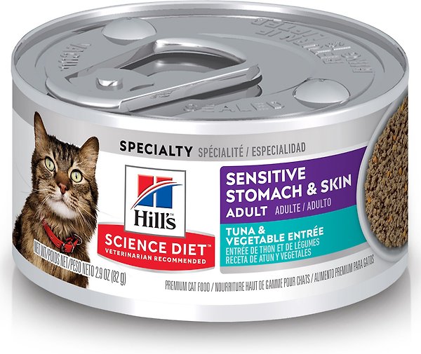 Hill's Science Diet Adult Sensitive Stomach & Skin Tuna & Vegetable Entree Canned Cat Food, 82-g can, case of 24