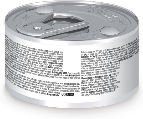 Hill's Science Diet Adult Sensitive Stomach & Sensitive Skin Salmon & Vegetable Entree Canned Cat Food, 2.9-oz can, case of 24