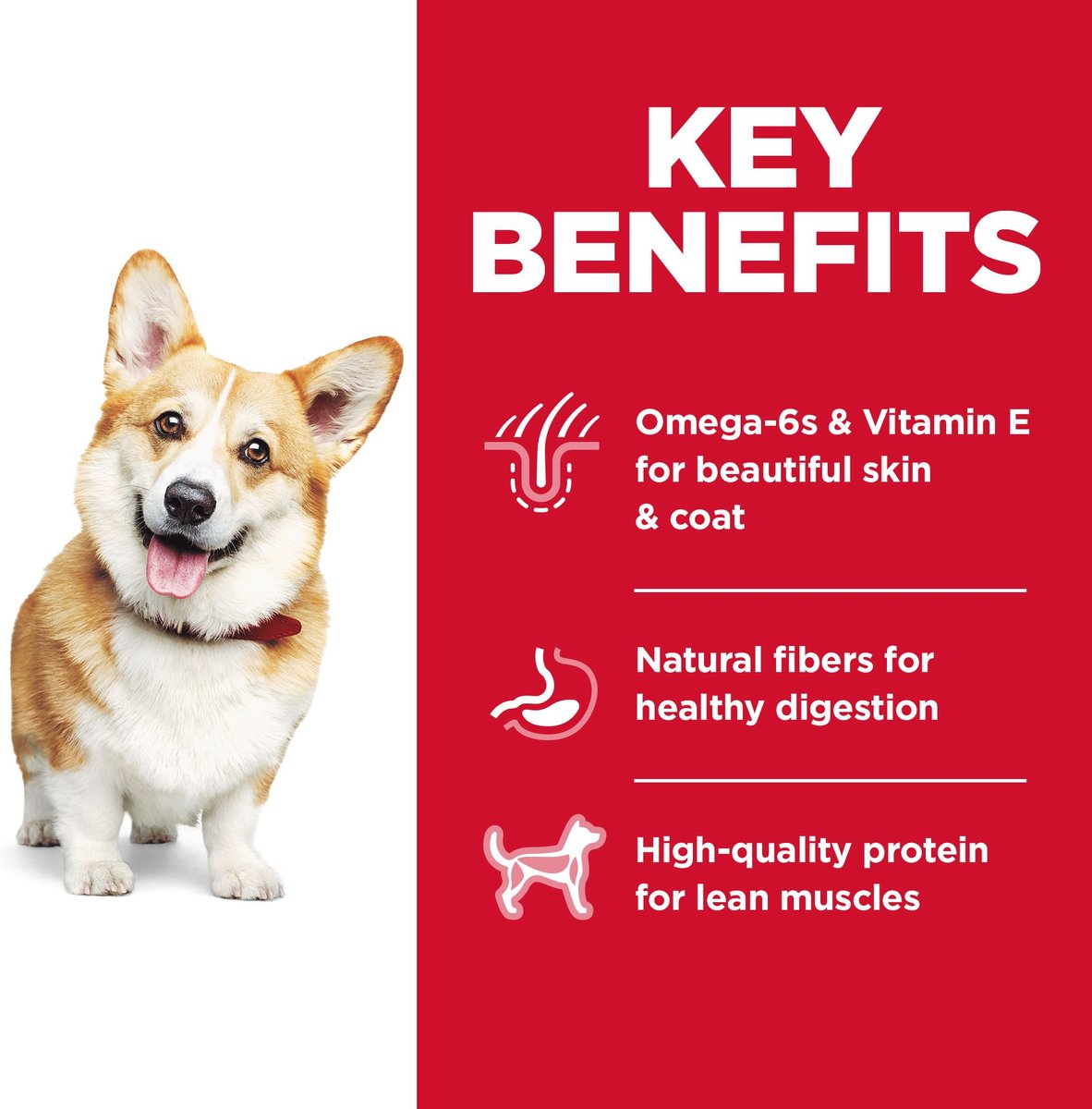 Hill’s Science Diet adult dog foods contain essential nutrients for dogs during the prime of their life. With natural fibers for healthy digestion, they also include omega-6s and vitamin E for beautiful skin and coat.