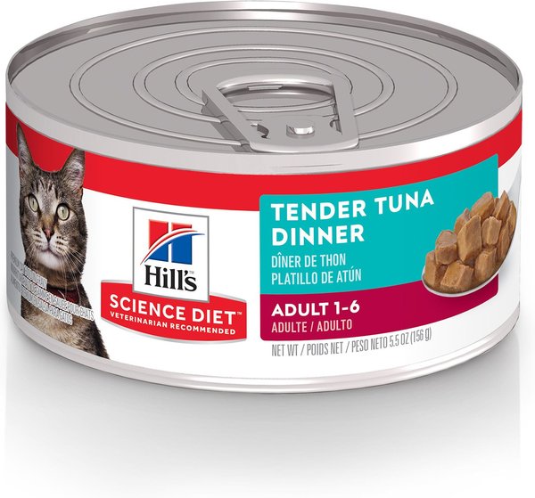 Hill's Science Diet Adult Tender Tuna Dinner Canned Cat Food, 156-g can, case of 24