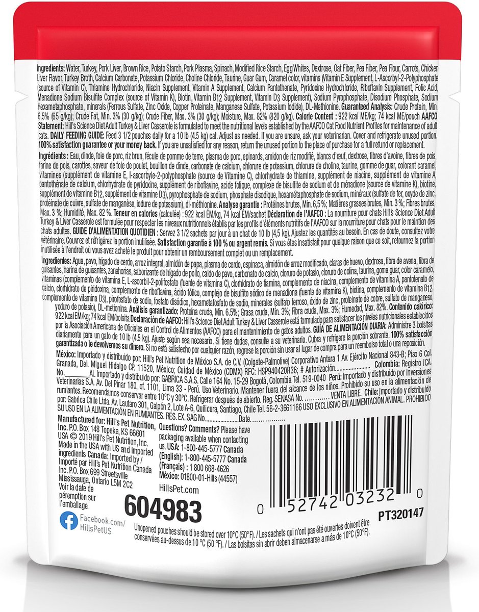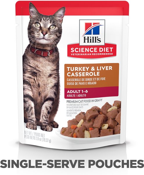 Hill's Science Diet Adult Turkey & Liver Casserole Recipe Cat Food, 79-g pouch, case of 24