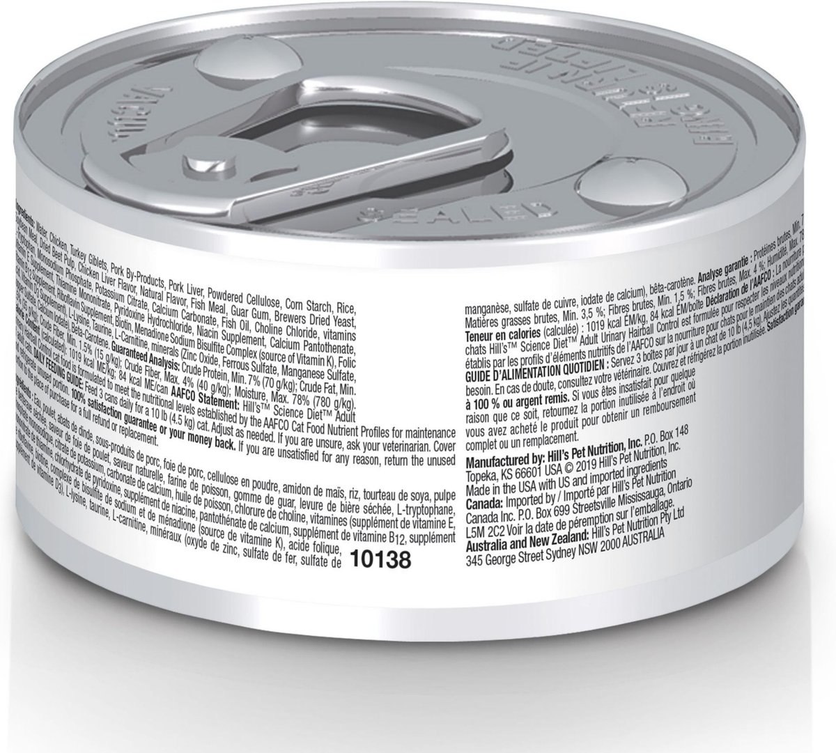 Hill's Science Diet Adult Urinary Hairball Control Savory Chicken Entree Canned Cat Food, 82-g can, case of 12
