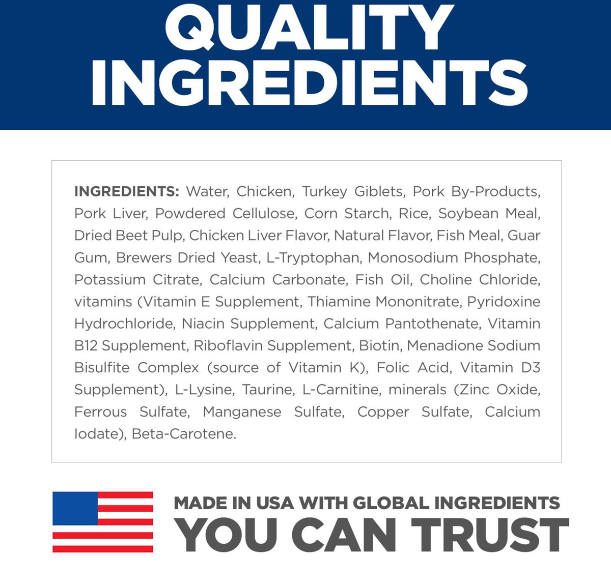 Hill’s Science Diet Adult Urinary Hairball Control Cat Food supports urinary health by providing optimal levels of magnesium, with natural fiber to help prevent hairballs. Many cats suffer from recurring urinary tract issues, so Hill’s has formulated this food with optimal nutrient, mineral, and fiber levels to prevent problems before they start. High quality protein, fatty acids, and antioxidants promote immune health and optimal nutrition, while wholesome, delicious ingredients like savory chicken make these foods irresistible to cats.