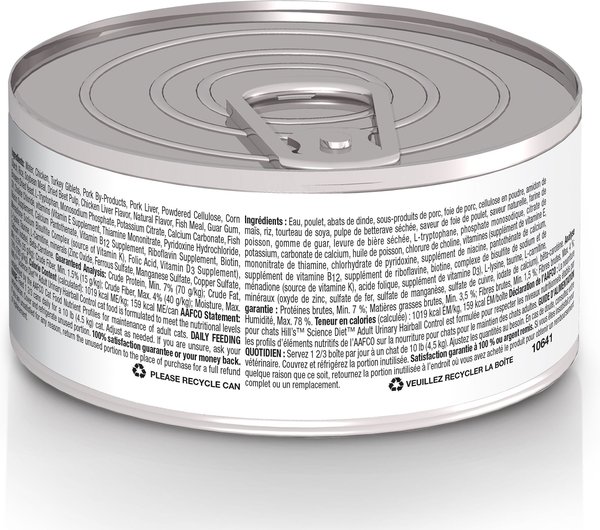 Hill's Science Diet Adult Urinary Hairball Control Savory Chicken Entree Canned Cat Food, 156-g can, case of 24