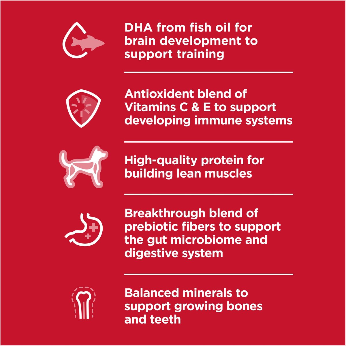 Five essential building blocks support healthy brain, eye, muscle, bone, and immune system development.