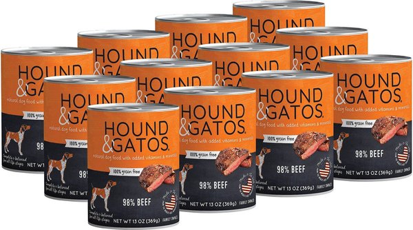 Hound & Gatos 98% Beef Grain-Free Canned Dog Food, 13-oz, case of 12