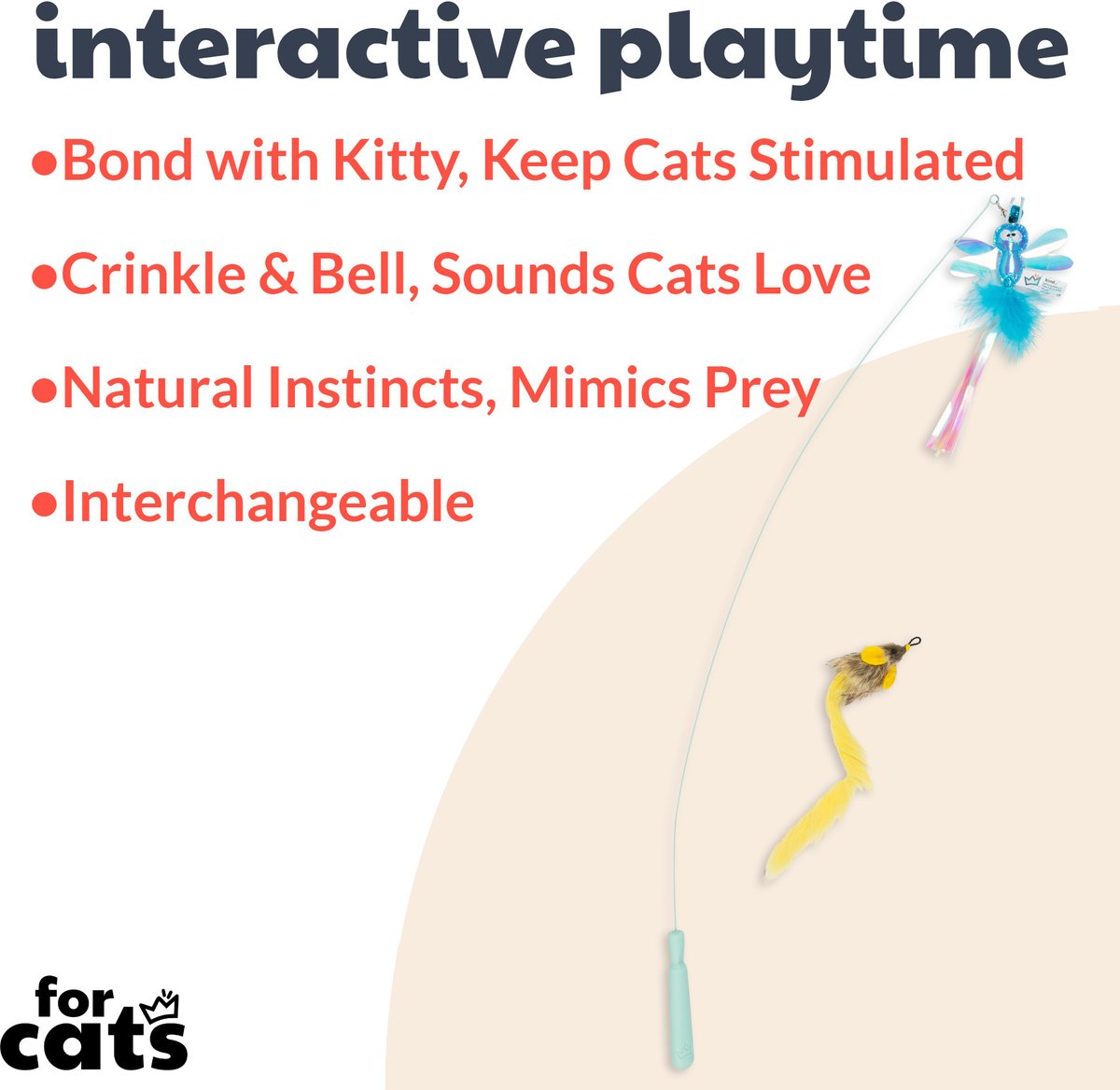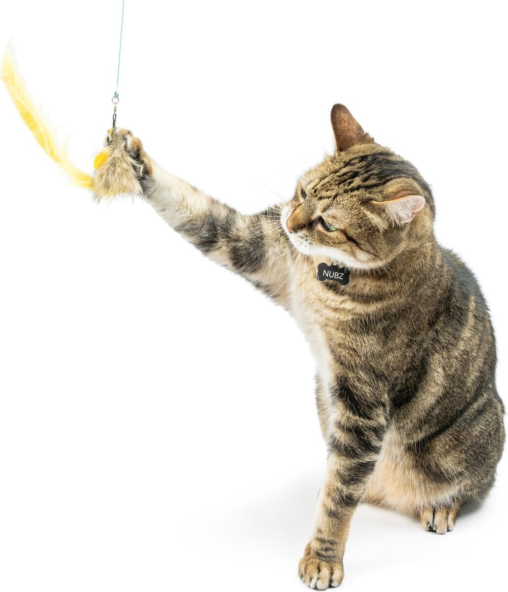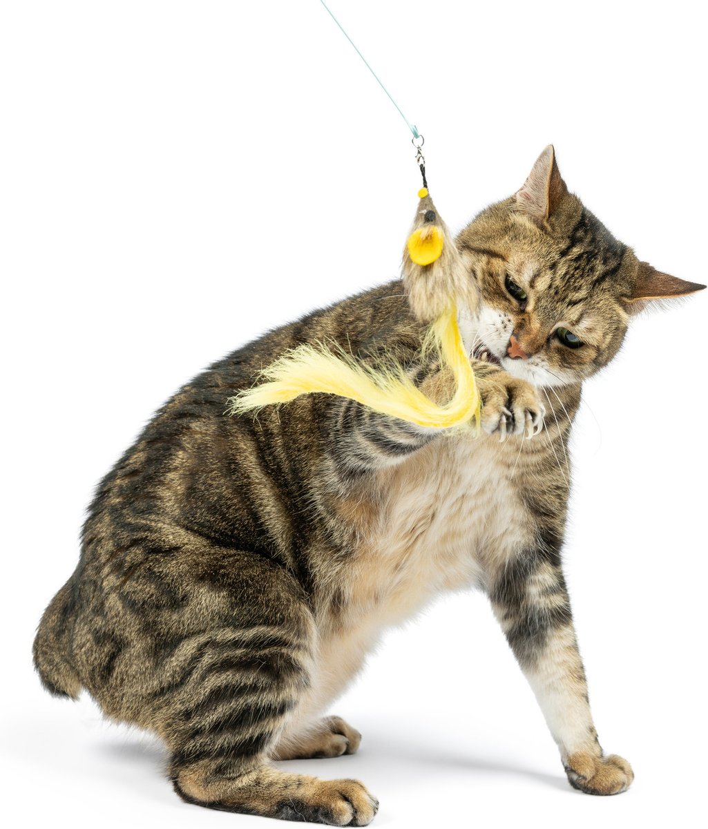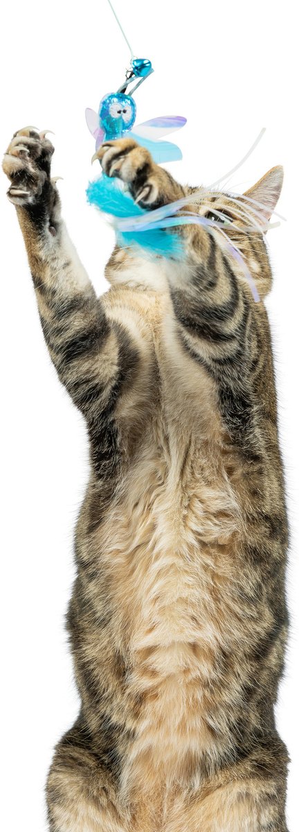 After playtime, store wands and teasers out of reach to prevent kitty from chewing on wires, streams, and small metal parts.