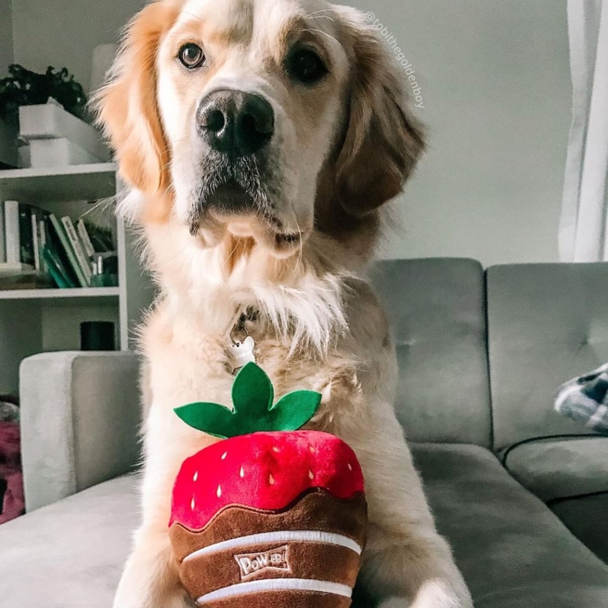 Huxley & Kent Dog Power Plush Chocolate Strawberry Dog Toy, Red, Small