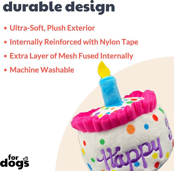Huxley & Kent Dog Power Plush Happy Barkday Cake Dog Toy, Multicolor, Small