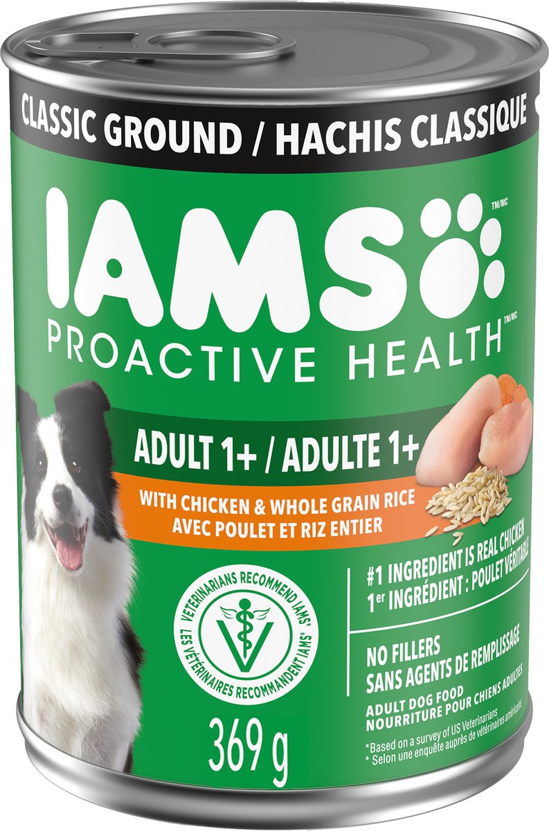 Iams Proactive Health Adult Chicken & Rice Wet Dog Food, 369-g can, case of 12