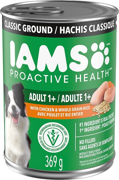 I usually buy my dog the Beyond organics chicken pate, but chewy was out of stock of it so I got this iams instead. I don't normally buy iams bc I don't care for the brand for reasons... but my dog seems to like it ok and that's good. If she's happy, I'm happy. I will go back to the brand I normally buy for her when she needs it nxt time. So, overall it's an acceptable wet food to add to her no grain dry. Thank you chewy for great service and reliability!
