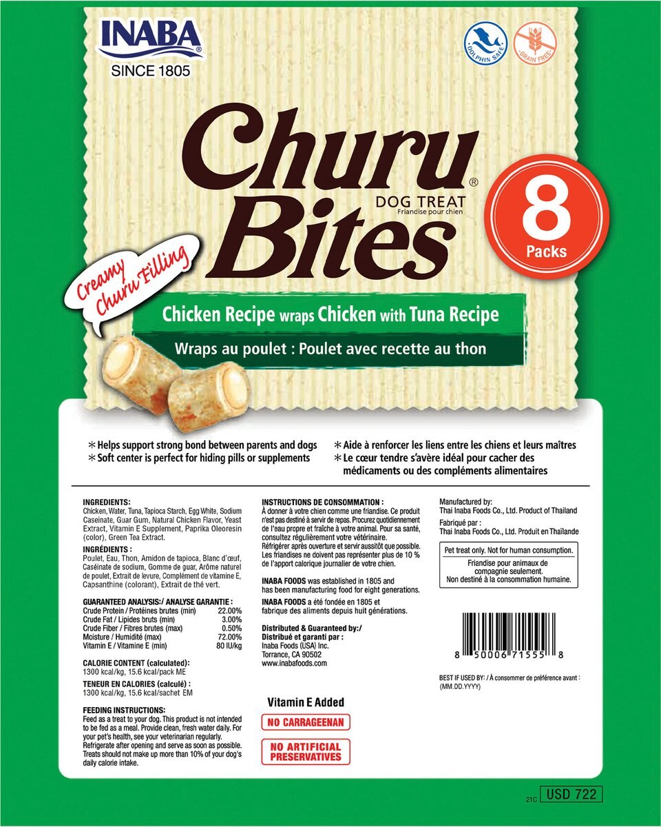 Inaba Churu Bites Chicken with Tuna Recipe Soft & Chewy Dog Treats, 12-g pouch, 8 count