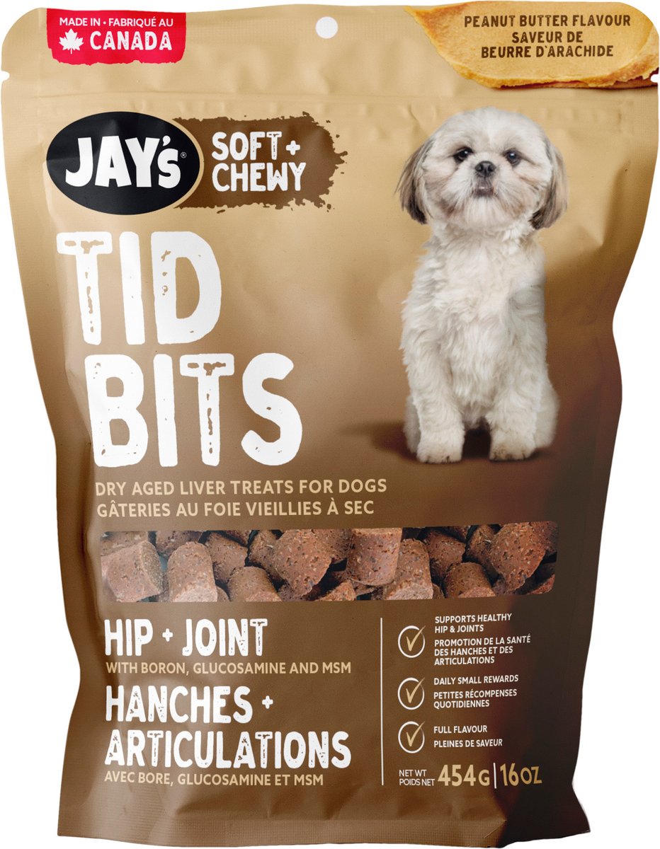 Jay's Tasty Adventures Peanut Butter Tid Bits Hip & Joint Soft & Chewy Dog Treats, 454-g bag