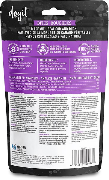 Jerky Dogit Snack Bar Cod & Duck Bites Jerky Dog Treats, 150-g bag