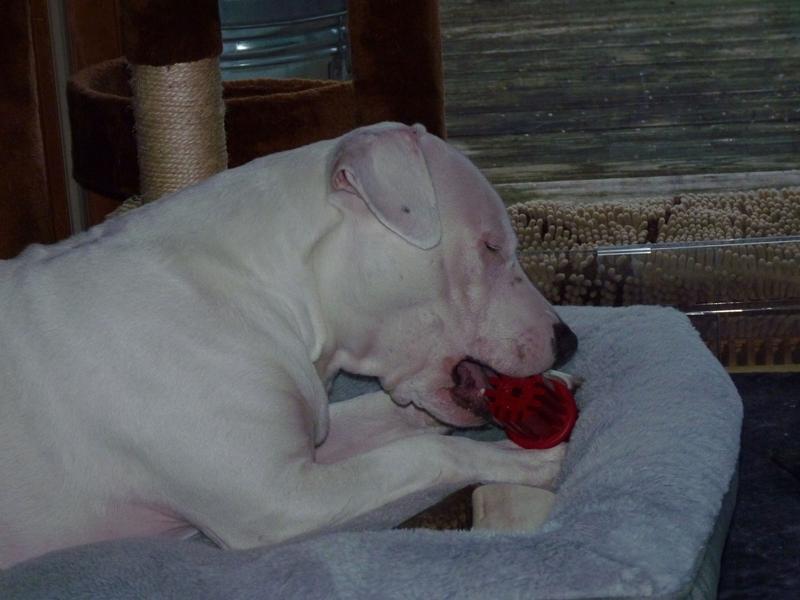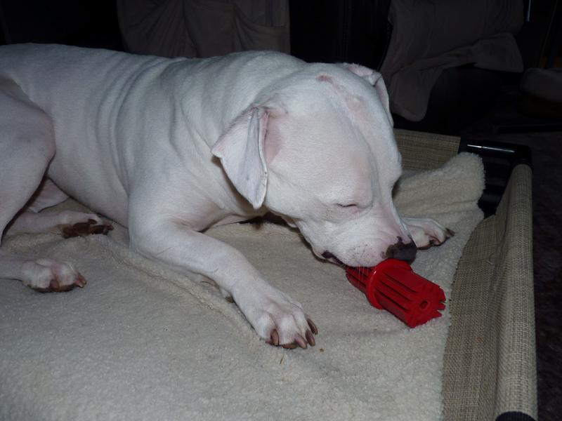 The Large KONG Dental Stick Dog Toy would be suitable for your dogs.