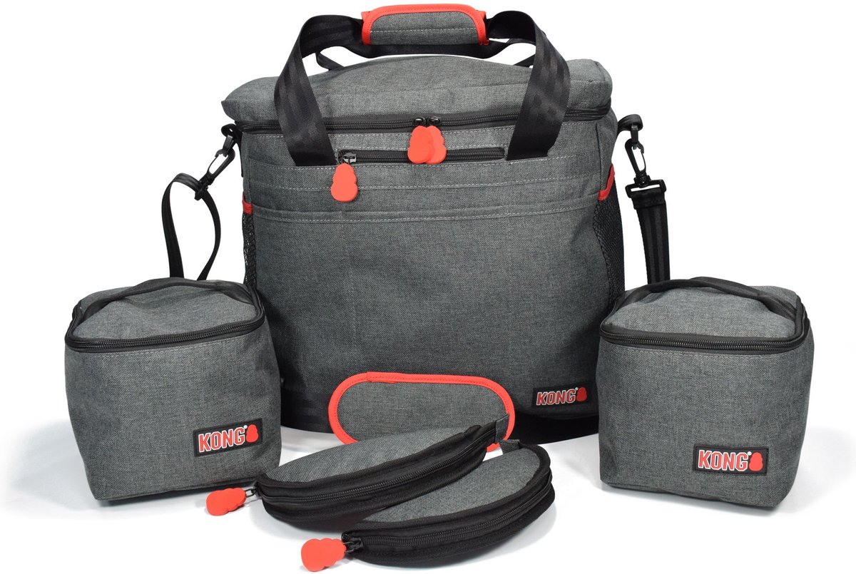This travel bag comes with 2 storage bags that each hold 15 cups, and 2 foldable bowls that each hold 8.5 cups.