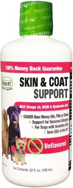 Liquid-Vet K9 Skin & Coat Support Unflavoured Supplement for Dogs, 32-oz bottle