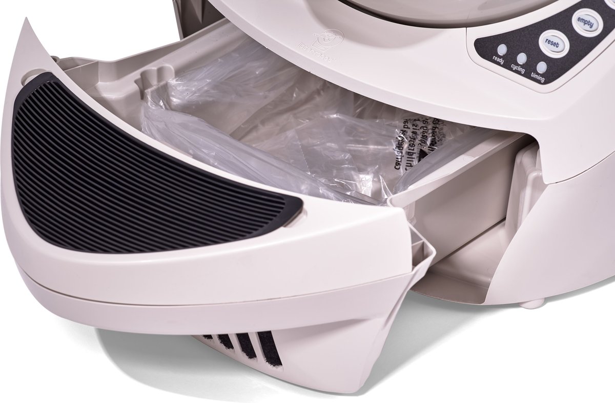 The edges of the bag will need to be rolled down when placing them in the Litter Robot waste drawer.