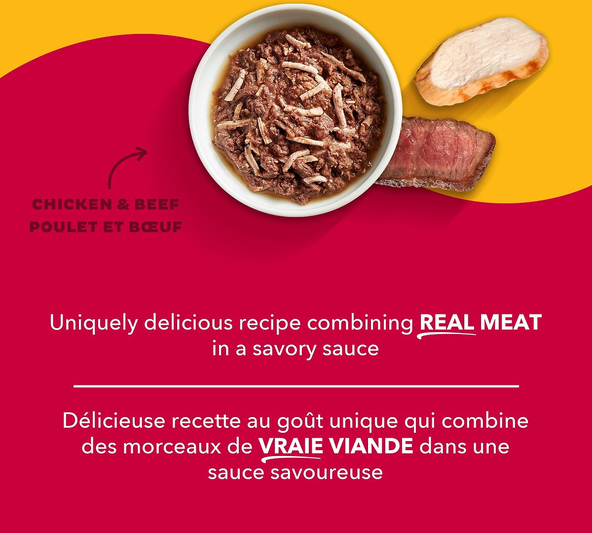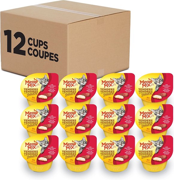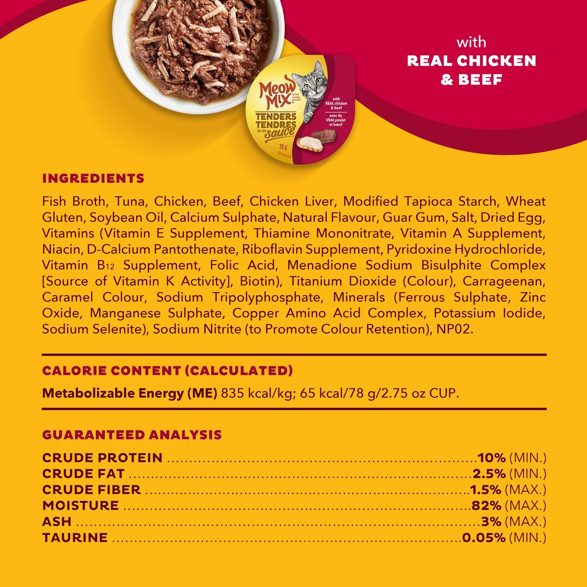 Meow Mix Tenders In Sauce Real Chicken & Beef Wet Cat Food, 78-g can, case of 12