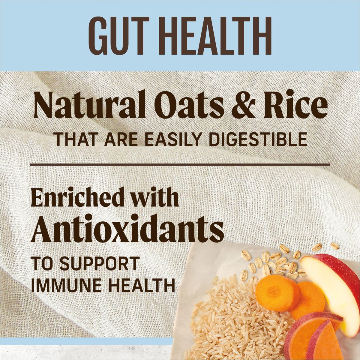 - This recipe contains easily digestible oats and rice, yogurt-infused clusters, and prebiotic fiber from chicory root to support gut health.