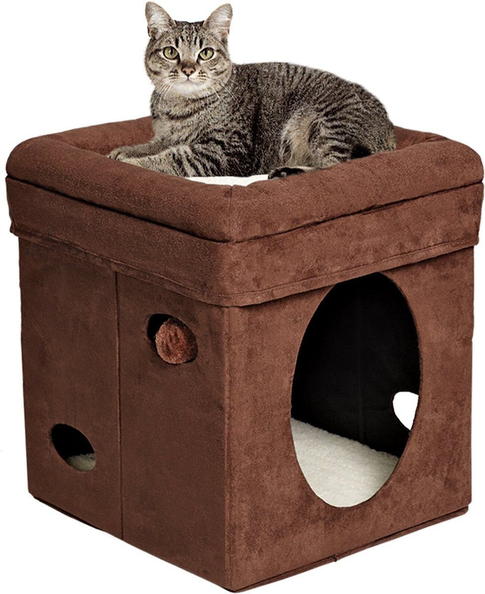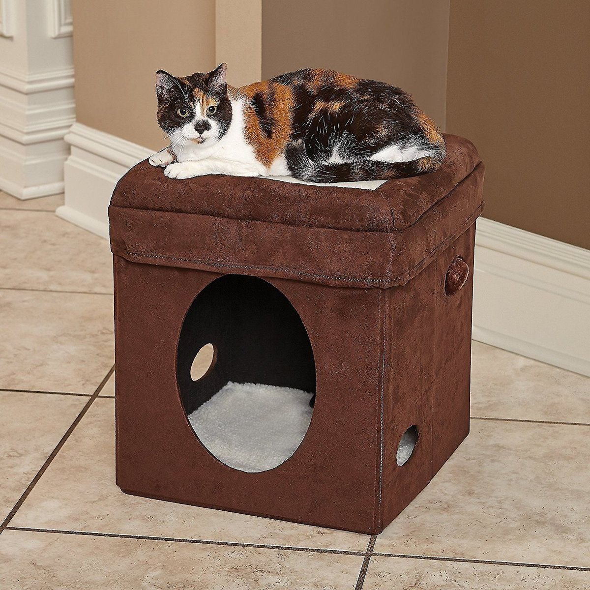 This cat condo does not have any chemical warnings and should not smell like chemicals when opened.