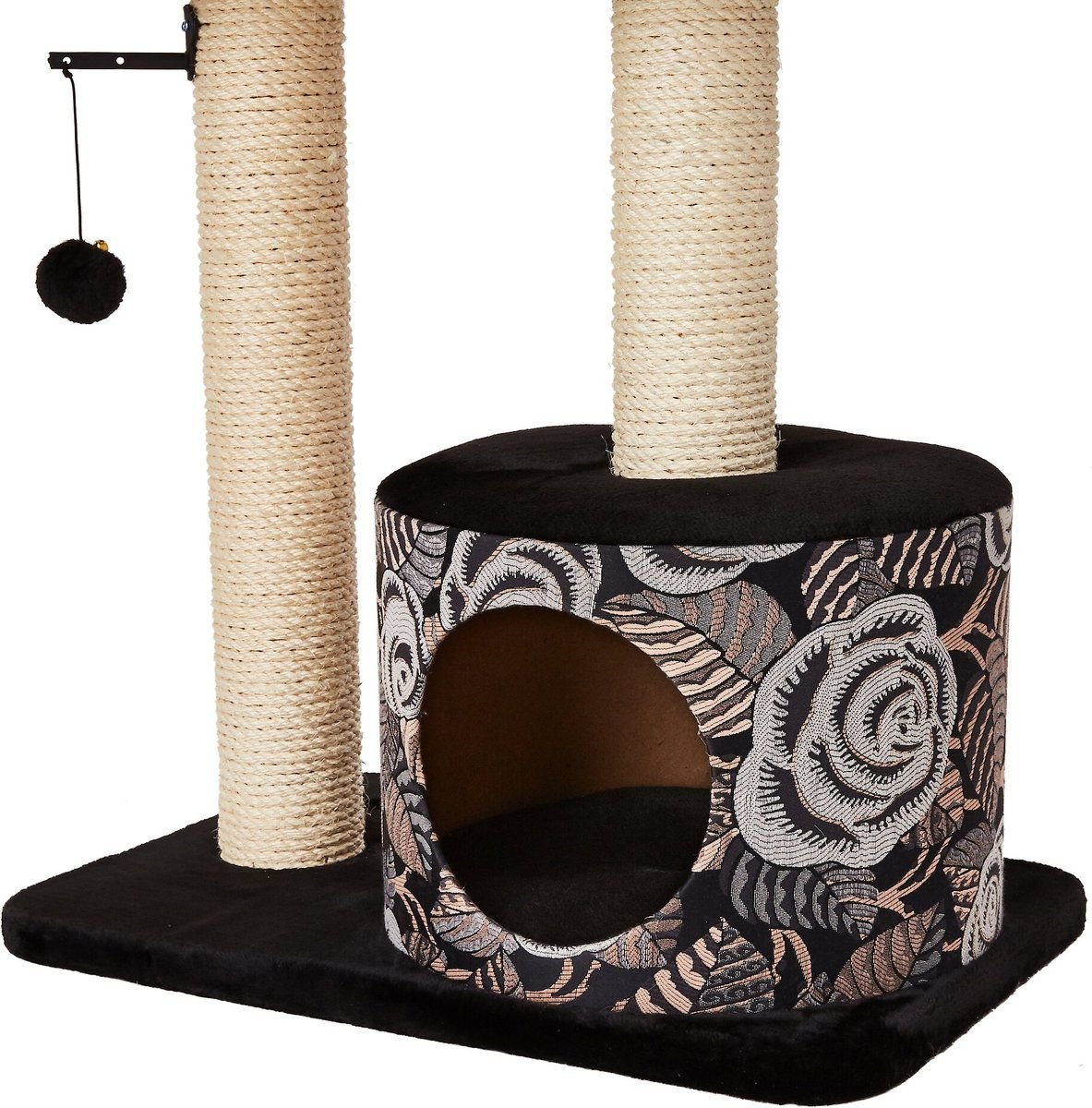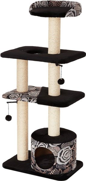 MidWest Feline Nuvo Tower 50.5-in Faux Fur Cat Tree & Condo, Black Floral