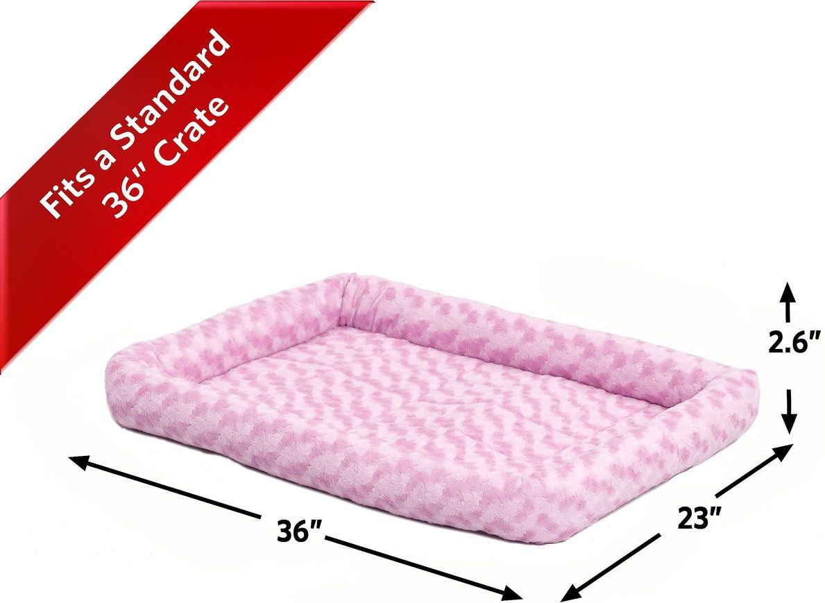 MidWest Quiet Time Fashion Plush Bolster Dog Crate Mat, Pink, 36-in