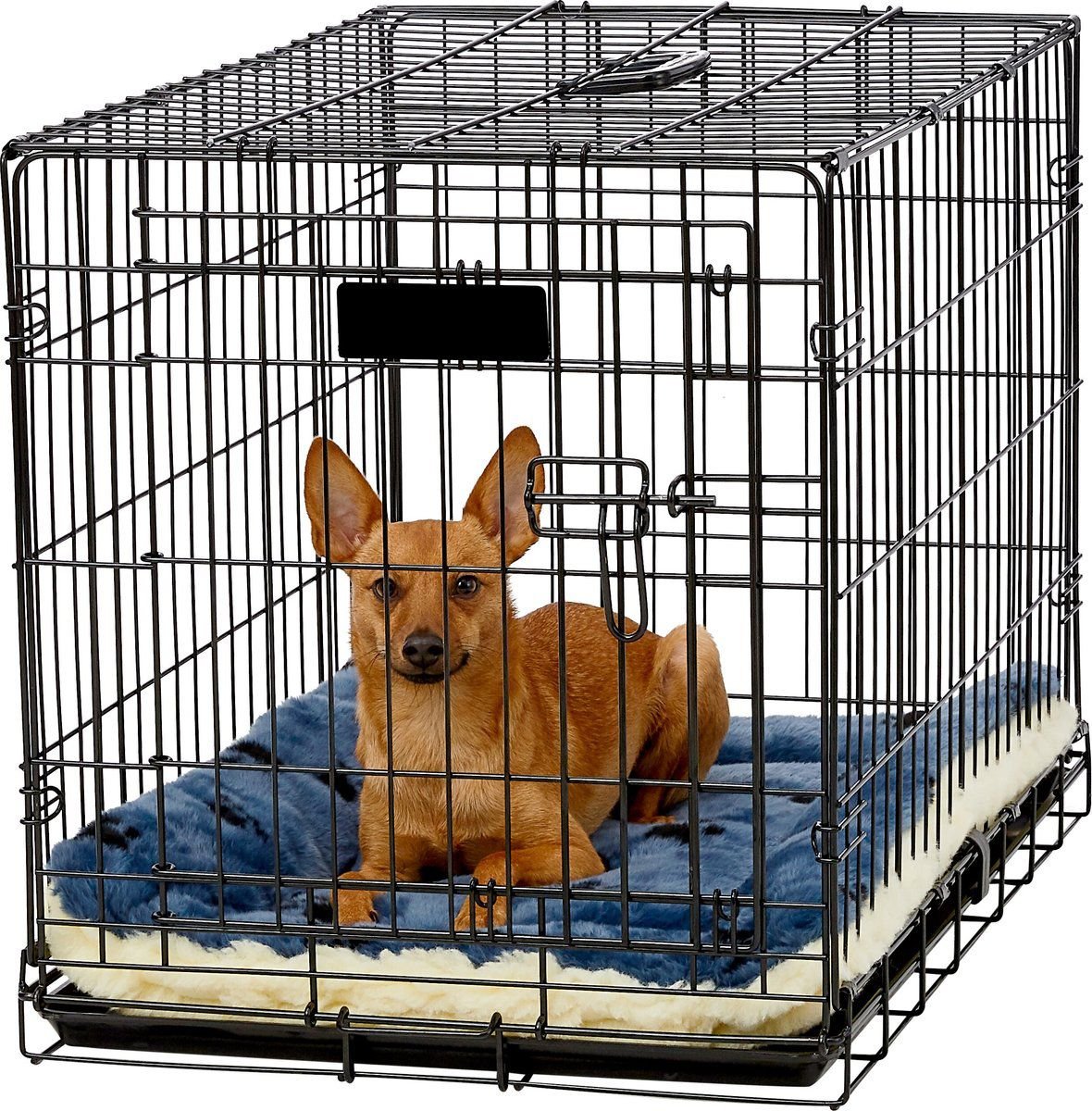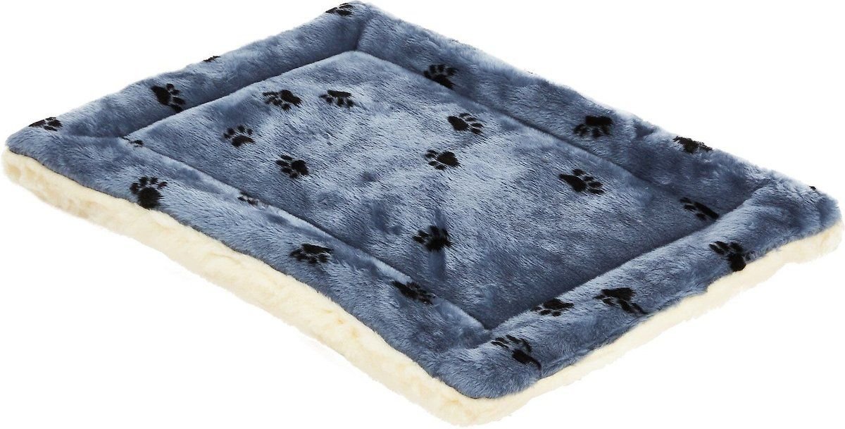 MidWest Quiet Time Fleece Reversible Dog Crate Mat, Blue Paw Print, 30-in