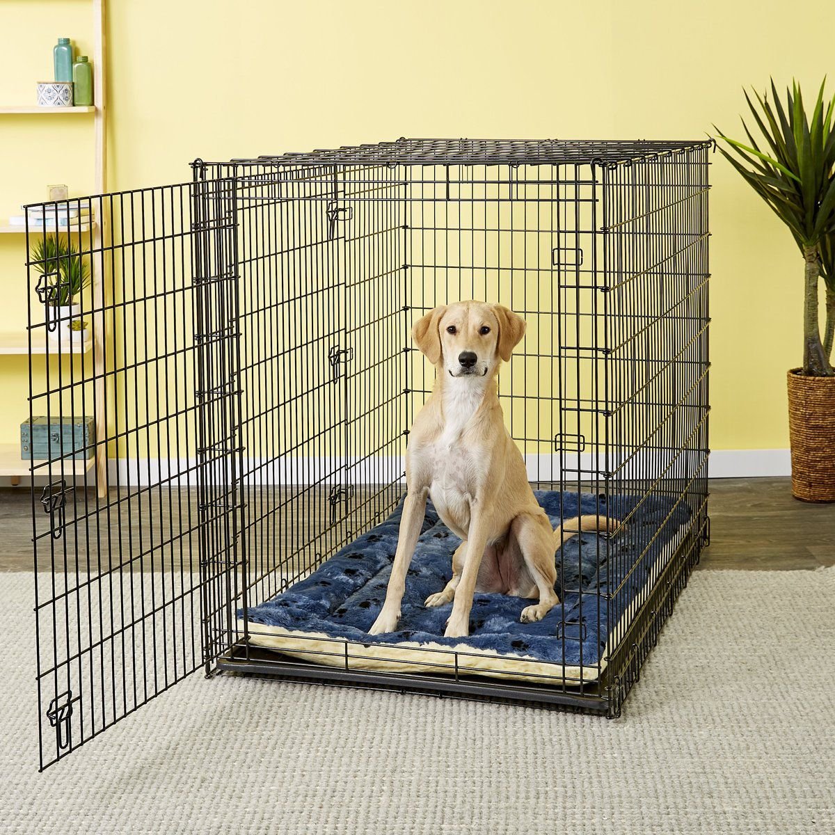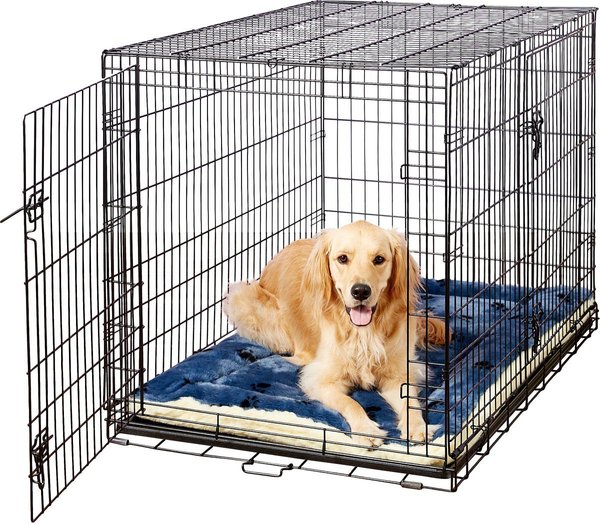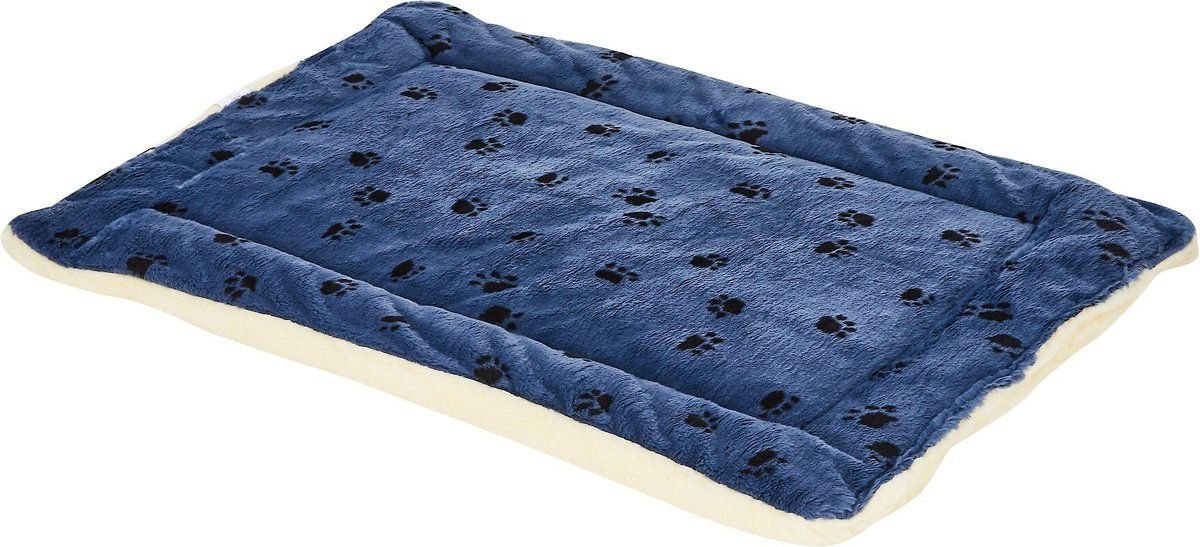 MidWest Quiet Time Fleece Reversible Dog Crate Mat, Blue Paw Print, 54-in