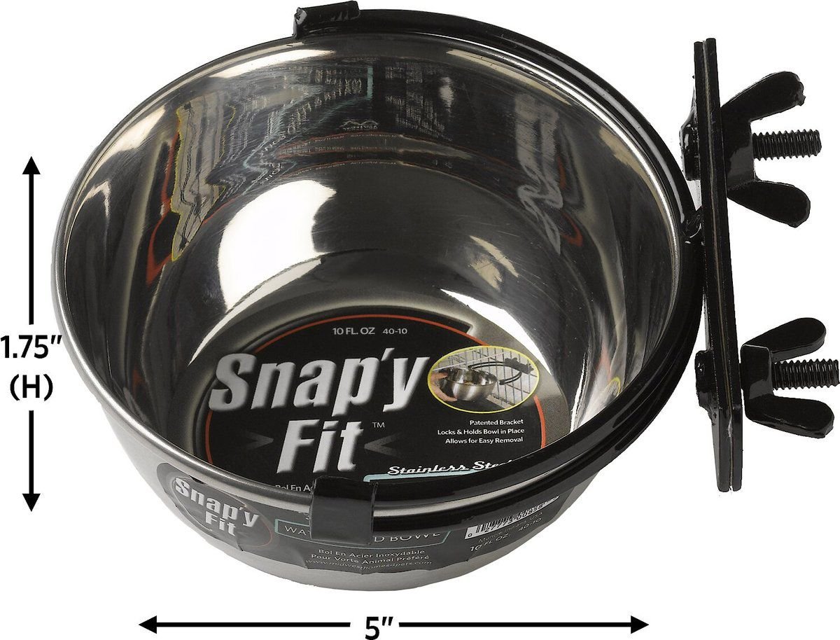 MidWest Stainless Steel Snap'y Fit Dog Kennel Bowl, 1.25-cup