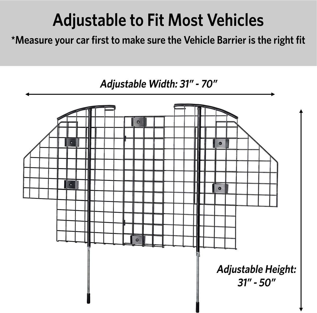 • Wire mesh pet barrier is fully adjustable to accommodate most vehicles, including cars, SUVs, vans, hatchbacks, and more.