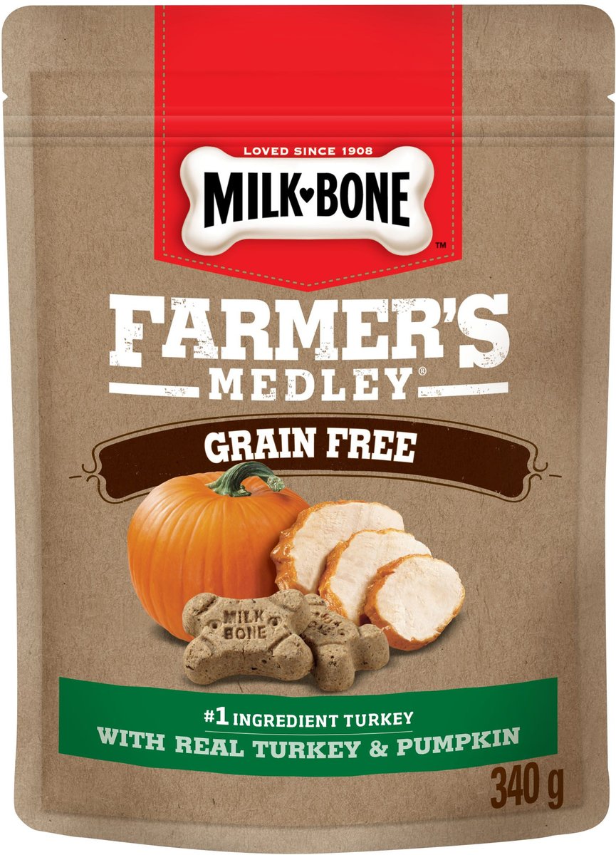 Milk-Bone Farmer's Medley Grain-Free Real Turkey & Pumpkin Dog Treats, 340-g bag