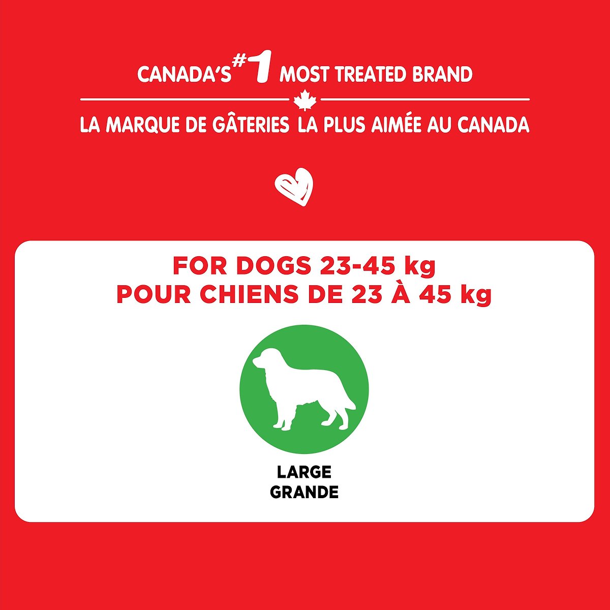 - Large biscuits are paw-fect for dogs weighing 23–45 kilograms.