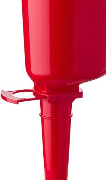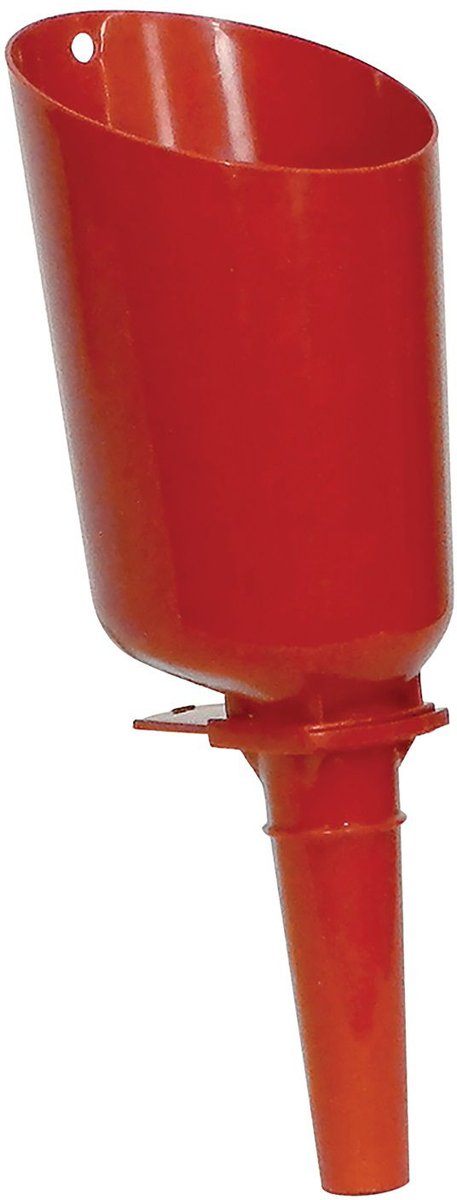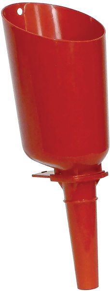 It broke after one use. The following are reasons I would not recommend: 1. Flimsy materials, weak plastic. 2. The slider is completely useless due to being very loose. 4. The spout is too narrow from top to bottom. Instead of tapering as a funnel, it's a tube. Feed clogs it immediately. Using the hollow "handle" with the "scoop" filled makes awkward weight distribution, and the flimsy construction doesn't hold up. That's why it broke on its first use. It is not functional for the intended purpose. I now use the scoop part (handle broke off) as a regular funnel, although it's not great for that either.