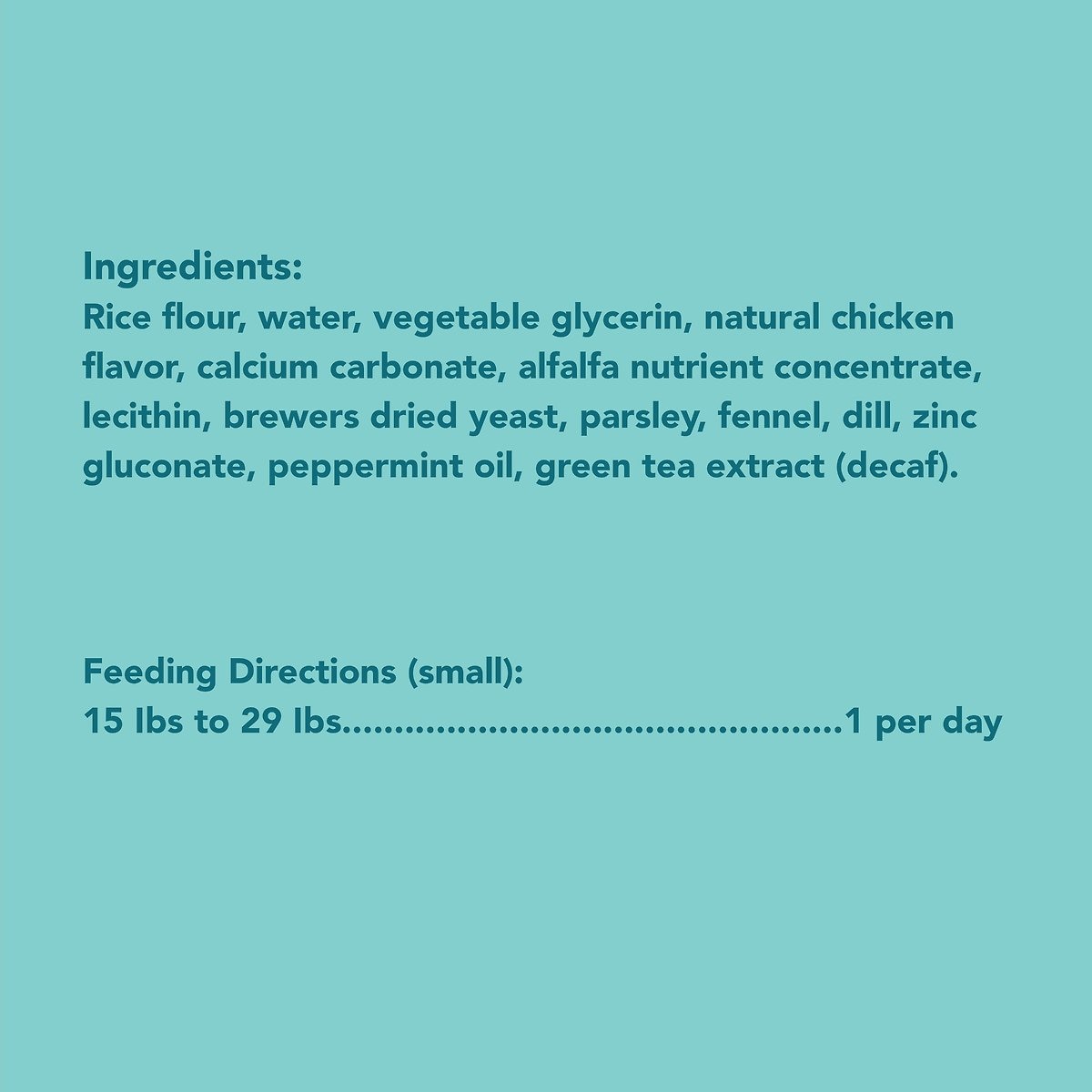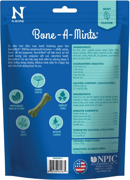 • Each bone features 5 natural breath fresheners including peppermint, parsley, fennel, dill, and alfalfa.