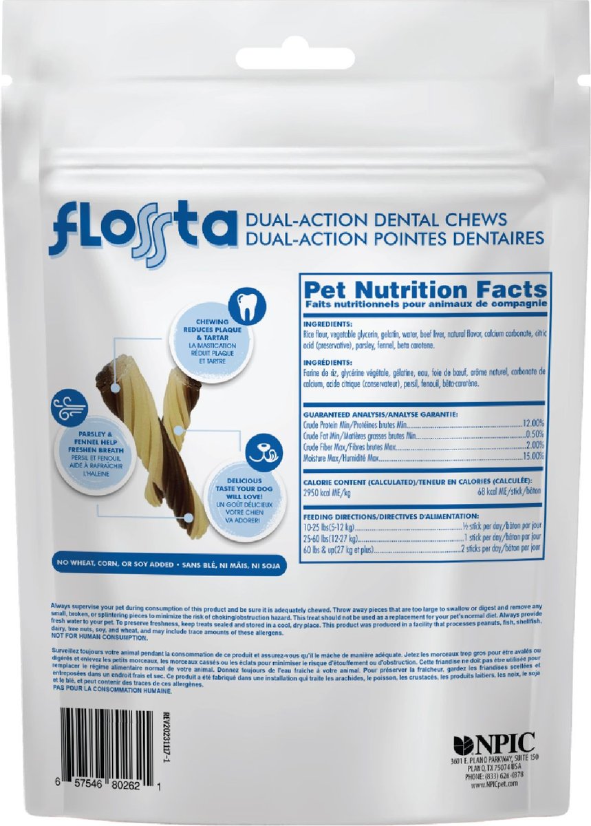 N-Bone Flossta Dual Action Beef Liver Flavor Dental Dog Chews, 8 count