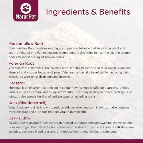 • Includes trace vitamins and minerals that are essential to your paw-tner’s healing process.