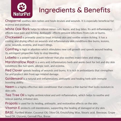- Herbal cream supplement that helps protect, heal and soothe your paw-tner’s skin and paws.